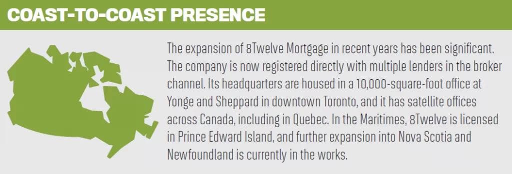 The company itself is made up of three distinct business units: 8Twelve Financial Technologies, the parent company, which develops financial services software such as the INFIN8 platform, 8Twelve Mortgage Corp, a national brokerage with access to all major lenders, and 8Twelve Capital, an administration company that funds private mortgages.